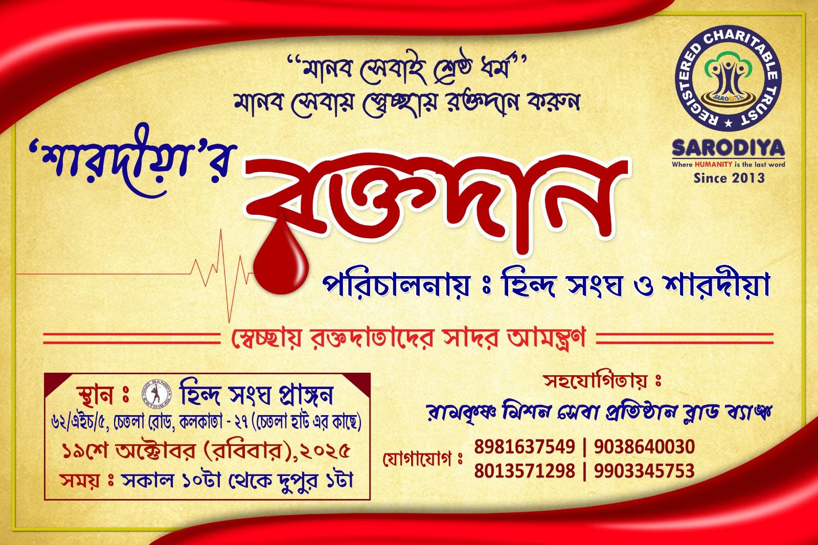 SARODIYA RAKTODAAN UTSAV | Blood Donation 2025 - Hind Sangha, Chetla | Kali Puja Special